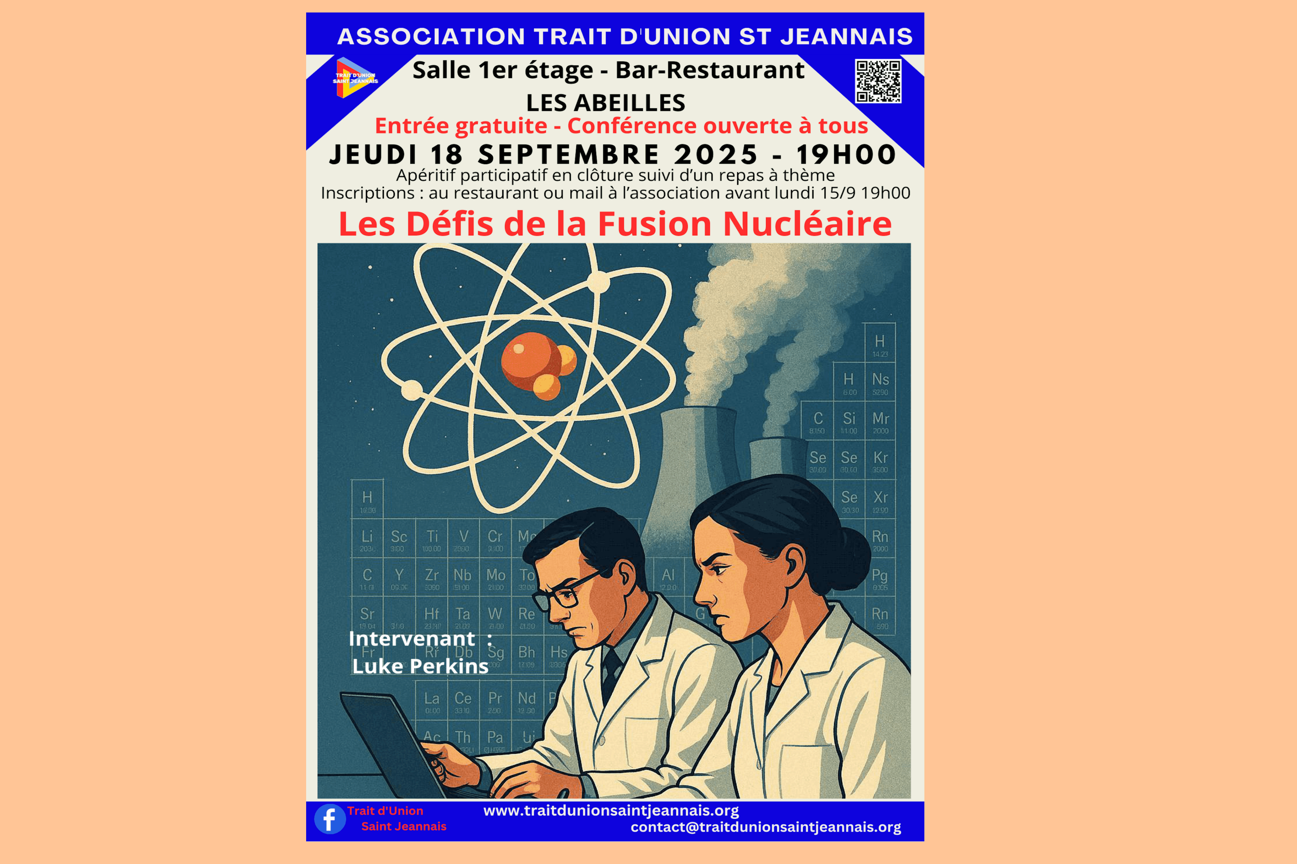 SEPTEMBRE 2025 : thématique scientifique pour cette reprise après la pause estivale au bar-restaurant Les Abeilles, accueillant une conférence captivante sur l’un des sujets les plus prometteurs et complexes de notre époque : la fusion nucléaire.